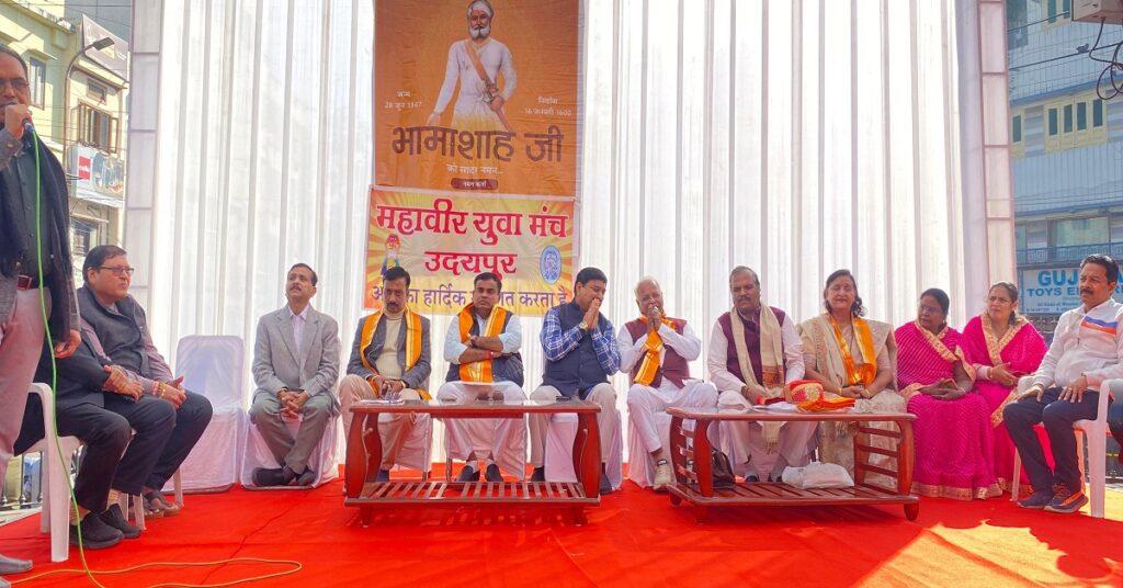 महावीर युवा मंच के महामंत्री नीरज सिंघवी ने बताया कि कार्यक्रम के अंतर्गत भामाशाह प्रतिमा स्थल पर माल्यार्पण एवं पुष्पांजलि अर्पित की गई। कार्यक्रम में मुख्य अतिथि के रूप में राजस्थान विद्यापीठ के कुलपति प्रो.एस .एस. सारंगदेवोत उपस्थित रहे, जबकि कार्यक्रम की अध्यक्षता पूर्व महापौर श्रीमती रजनी डांगी ने की। विशिष्ट अतिथि के रूप में शहर विधायक ताराचंद जैन एवं शहर भाजपा अध्यक्ष गजपाल सिंह राठौड़ मौजूद रहे। कार्यक्रम का विशेष आकर्षण राष्ट्रकवि सिद्धार्थ देवल की उपस्थिति रही।