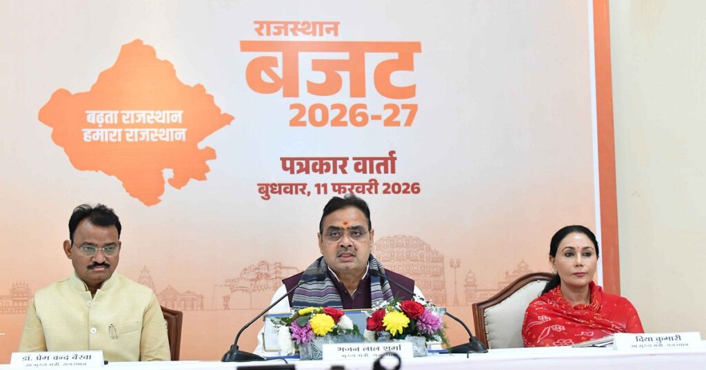 बुधवार को विधानसभा में उपमुख्यमंत्री (वित्त) दिया कुमारी द्वारा राज्य बजट 2026-27 प्रस्तुत किए जाने के बाद मुख्यमंत्री ने पत्रकार वार्ता में कहा कि अंत्योदय के प्रणेता पं. दीनदयाल उपाध्याय की पुण्य तिथि के दिन आया यह बजट महिला, युवा, मजदूर, वंचित, किसान सहित अंतिम पंक्ति के व्यक्ति के कल्याण को समर्पित है। उन्होंने कहा कि बजट में आधारभूत संरचना का सुदृढ़ीकरण सहित बिजली, पानी, शिक्षा, चिकित्सा जैसे बुनियादी क्षेत्रों में सुविधाओं और सेवाओं के लिए प्रावधान किए गए हैं, जिससे राजस्थान विकसित, समृद्ध और आत्मनिर्भर बनेगा। उन्होंने कहा कि वर्ष 2026-27 के बजट का आकार 6 लाख 10 हजार 956 करोड़ रुपये है, जो वर्ष 2023-24 के बजट की तुलना में 41 प्रतिशत अधिक है।