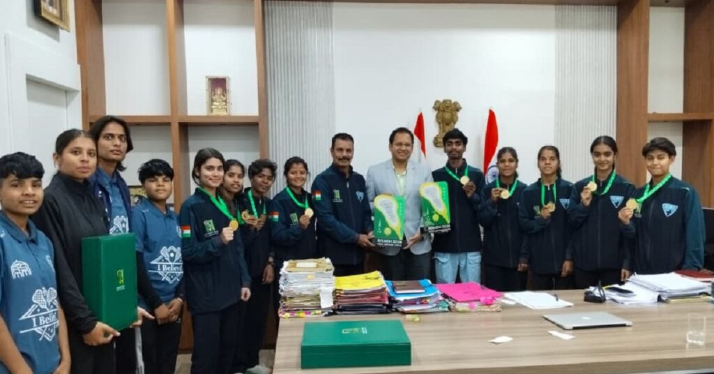 उदयपुर (अमोलक न्यूज Amolak News)। रियाद (सऊदी अरब) में आयोजित एशियन लैक्रोज गेम्स में भारतीय टीम द्वारा महिला एवं पुरुष वर्ग में दोहरा स्वर्ण पदक जीतकर देश, प्रदेश और उदयपुर का नाम अंतरराष्ट्रीय मंच पर गौरवान्वित करने वाले खिलाड़ियों के सम्मान का दौर निरंतर जारी है।